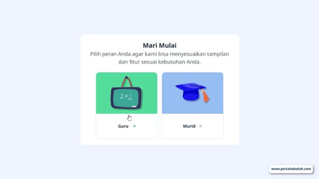 Tentukan peran Anda, baik sebagai “Guru” atau “Murid”, agar sistem dapat menyesuaikan tampilan fitur aplikasi.